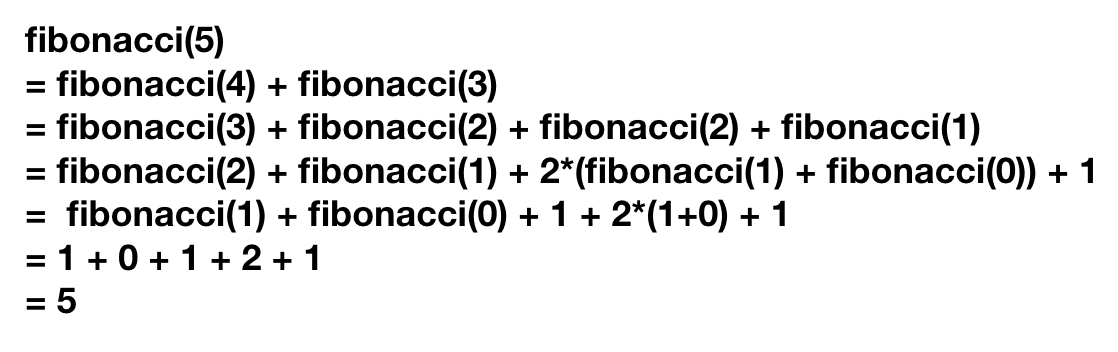 return fibonacci(n - 1) + fibonacci(n - 2)