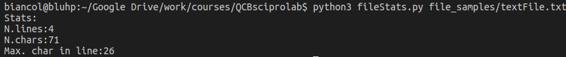 Example: Let’s write a program that reads the content of a file and prints to screen some stats like the number of lines, the number of characters and maximum number of characters in one line. Optionally (if flag -v is set) it should print the content of the file. You can find a text file here textFile.txt: