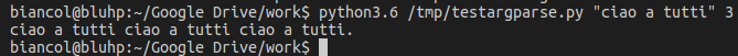 With the positional arguments "ciao a tutti" and 3, and with the optional parameters -s "___" -p 3 -v